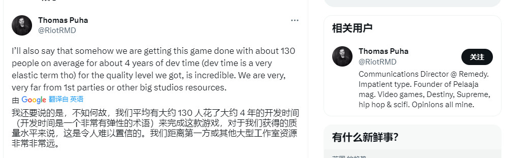 《心灵杀手2》作为玩家目前最期待的游戏之一,凭借着出色的画面效果和渲染氛围让很多玩家都想要快点见到游戏的正式内容,但是令人意外的是,这么一个精致的作品Remedy只投入了130多人进行开发。