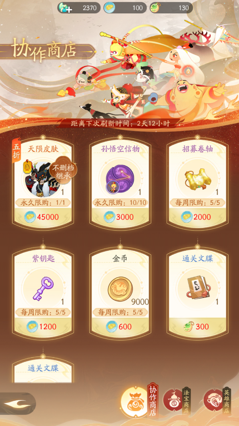专属法宝:金钥匙、商城礼包为主要产出渠道,可为指定英雄提供专属技能。