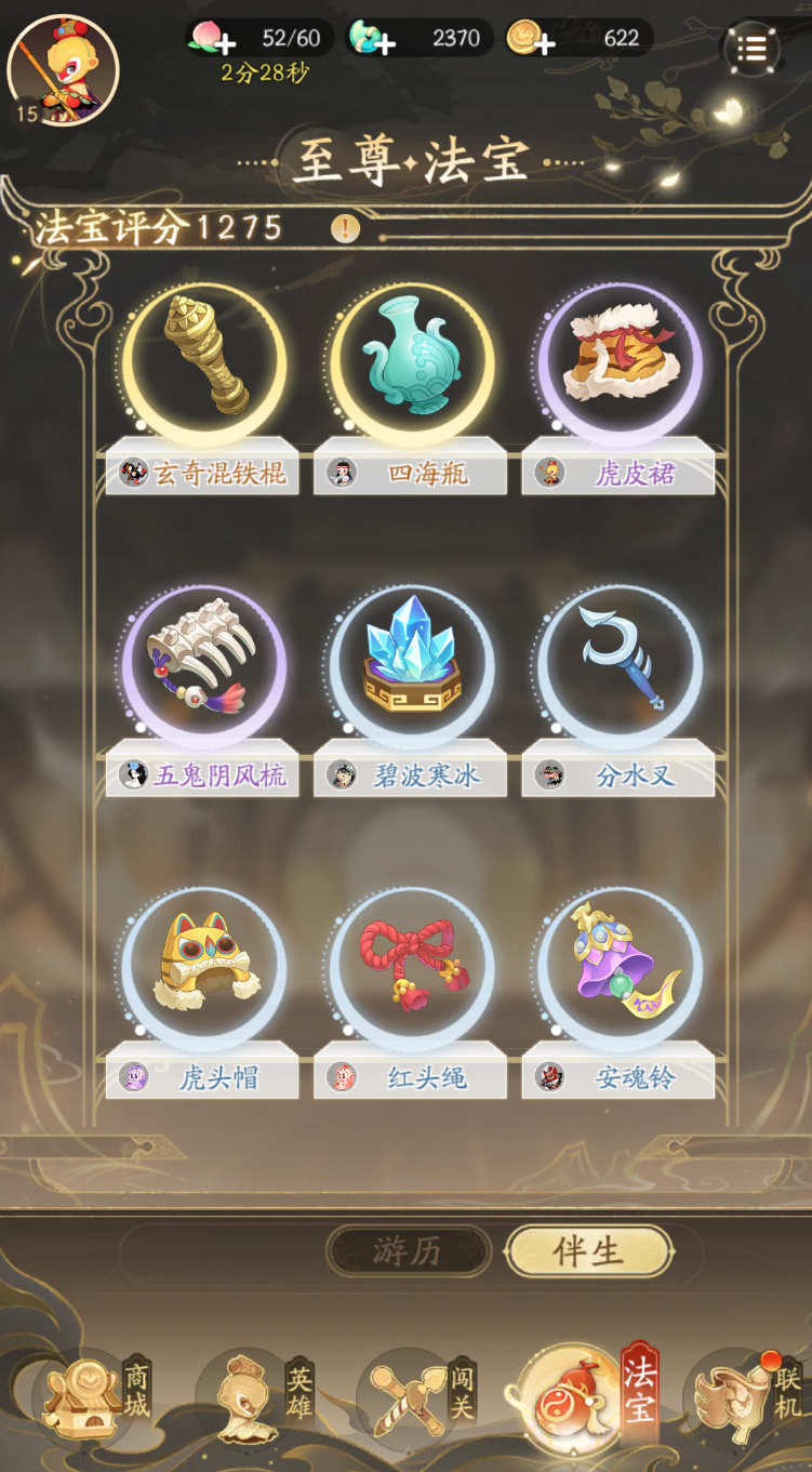 伴生法宝:首次获得英雄后,可获得该英雄的伴生法宝,与英雄的品质对应。