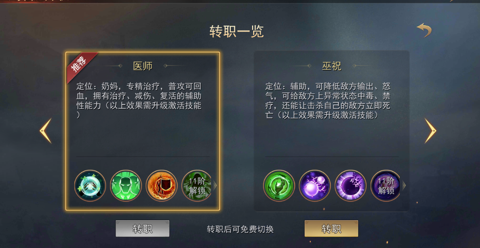 巫祝技能效果:恢复、减伤、增防、复活