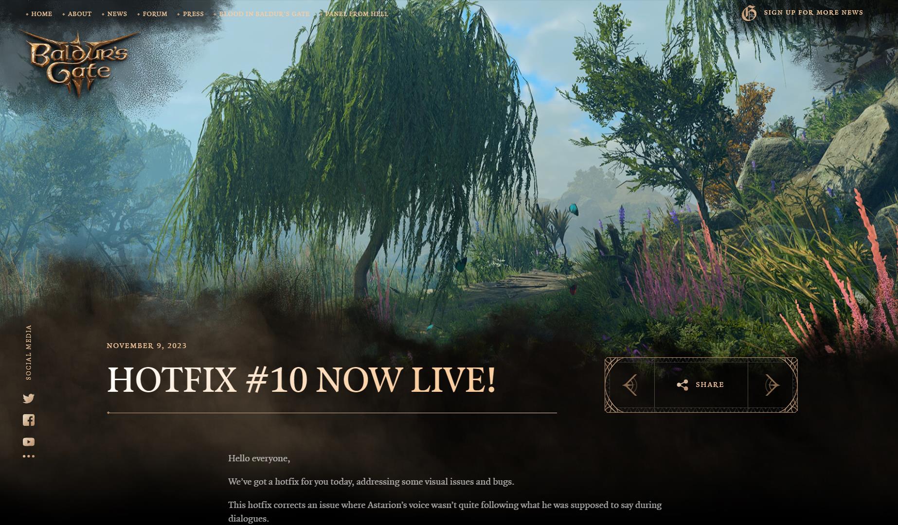 《博德之门3》开发团队近日在官方发布了游戏的10号热补丁更新信息,官方表示本次的热补丁修复了一些视觉问题和游戏存在的BUG,具体的信息感兴趣的玩家可以了解一下。