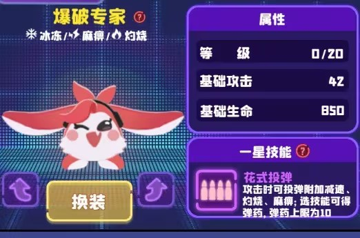 攻击时可投弹附加减速、灼烧、麻痹;选技能可得弹药,弹药上限为10。