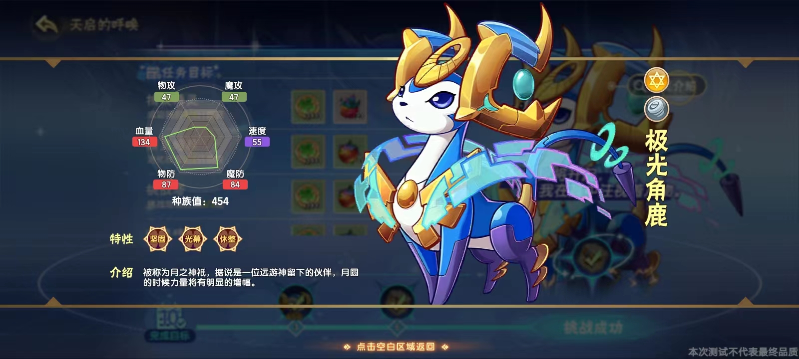 极光角鹿的光能屏障可以提升自身魔防,在挑战时可优先考虑物理攻击。
