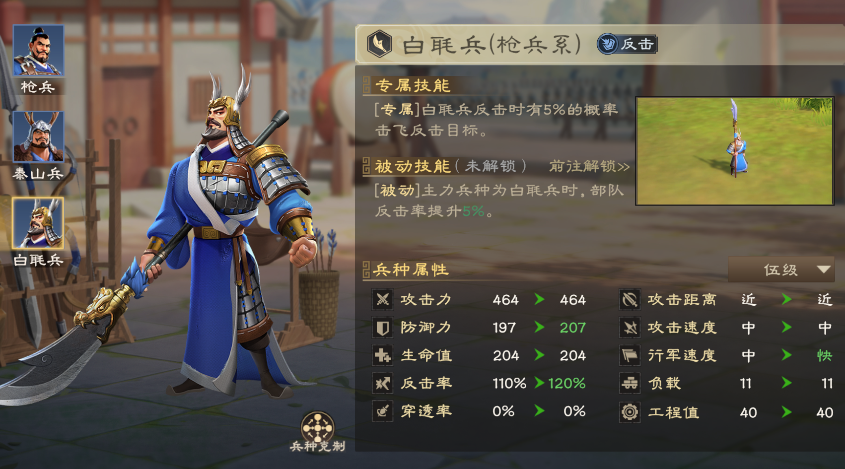 有条件的情况下,关羽推荐优先组桃园枪,白毦兵比较契合于反击机制。如果走枪兵路线,可以优先针对各类骑兵队伍。